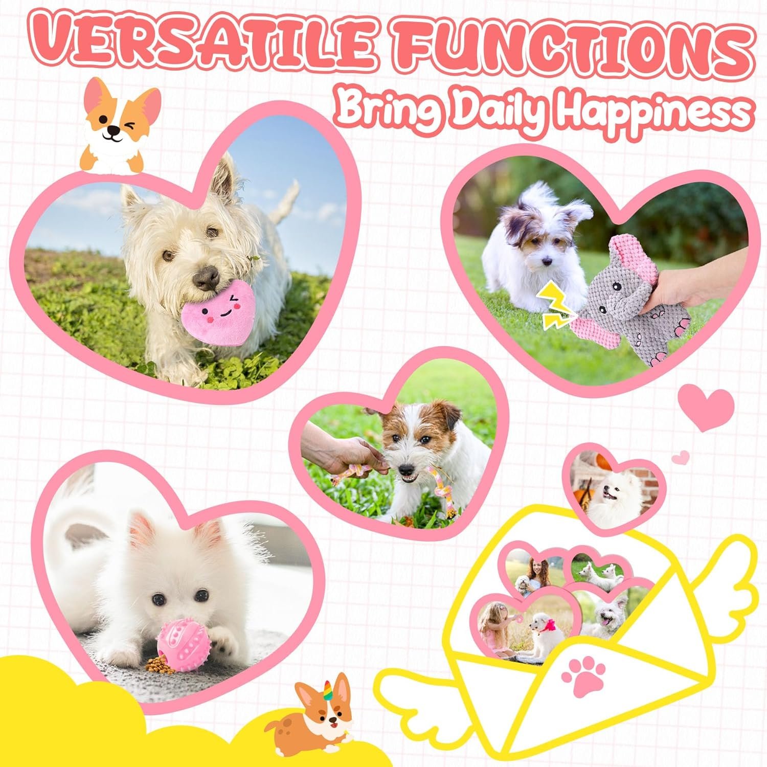XIUGOAL Pink Puppy Toys – 9 Pack Puppy Chew Toys for Teething, Enrichment Dog Toys for Small Dogs to Keep Them Busy, Squeaky Plush Toy for Boredom