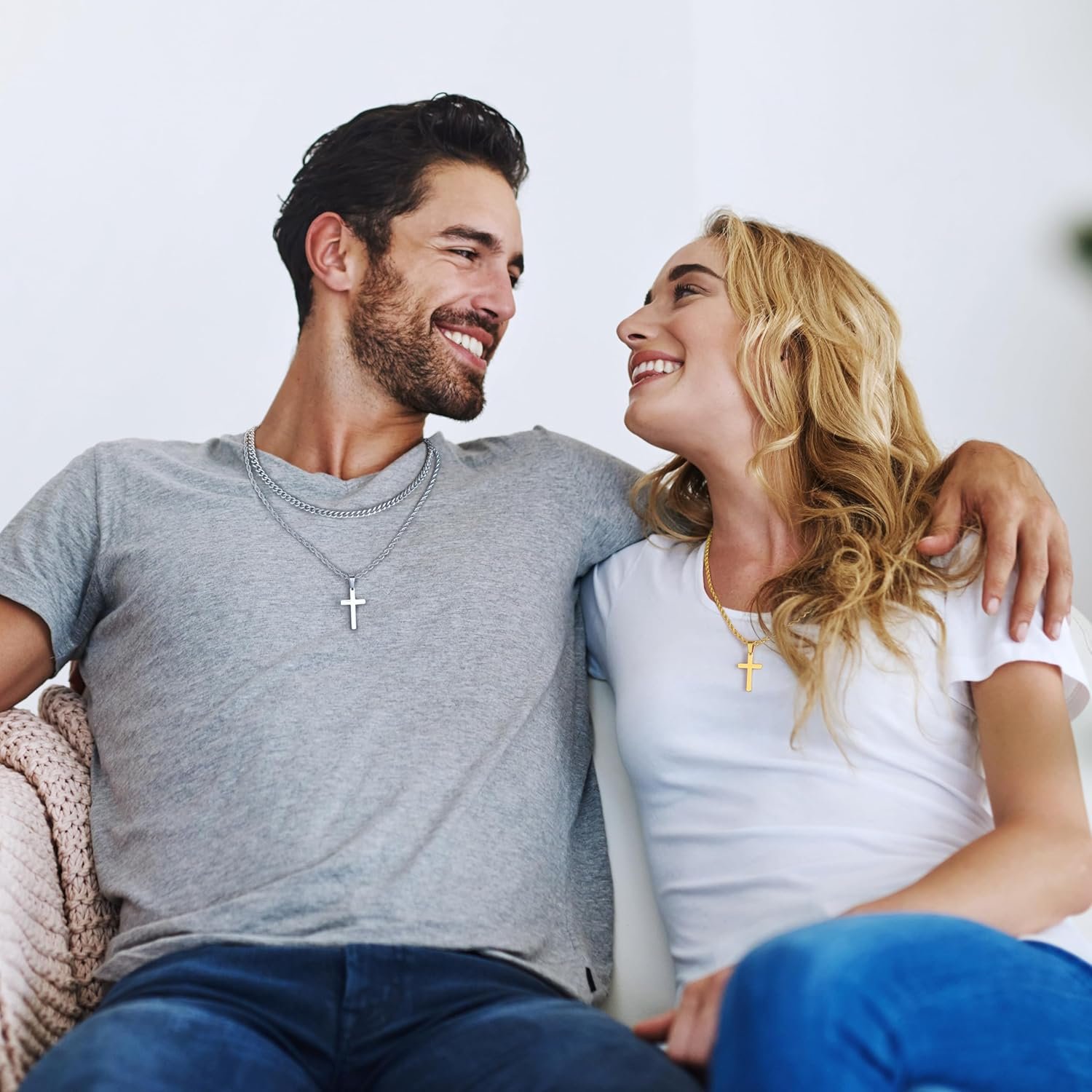 Yooblue Easter Basket Stuffers – Cross Necklace for Men, Gold Black Silver Mens Cross Necklaces Stainless Steel Cross Pendant Necklace Simple Jewelry Gifts Cross Chain Necklaces for Men