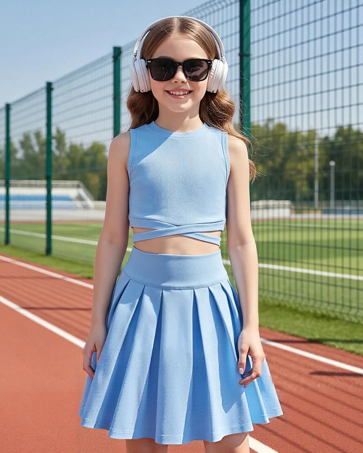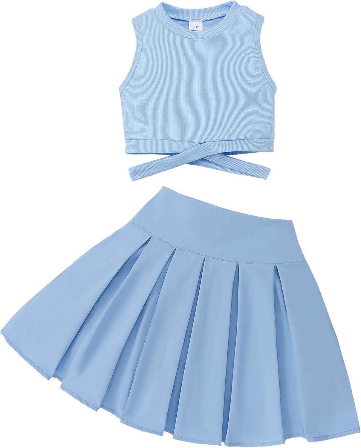 YOURUIKEY Cute Clothes for Girls Crisscross Crop Tank Top Pleated Skirt Tween Girl Trendy Summer Outfit Kid Clothing Set 7-14