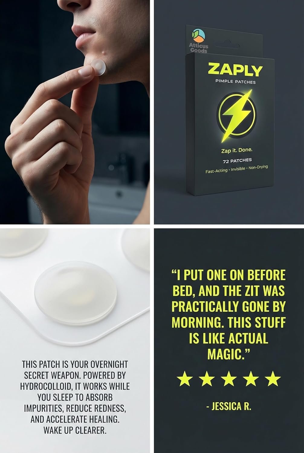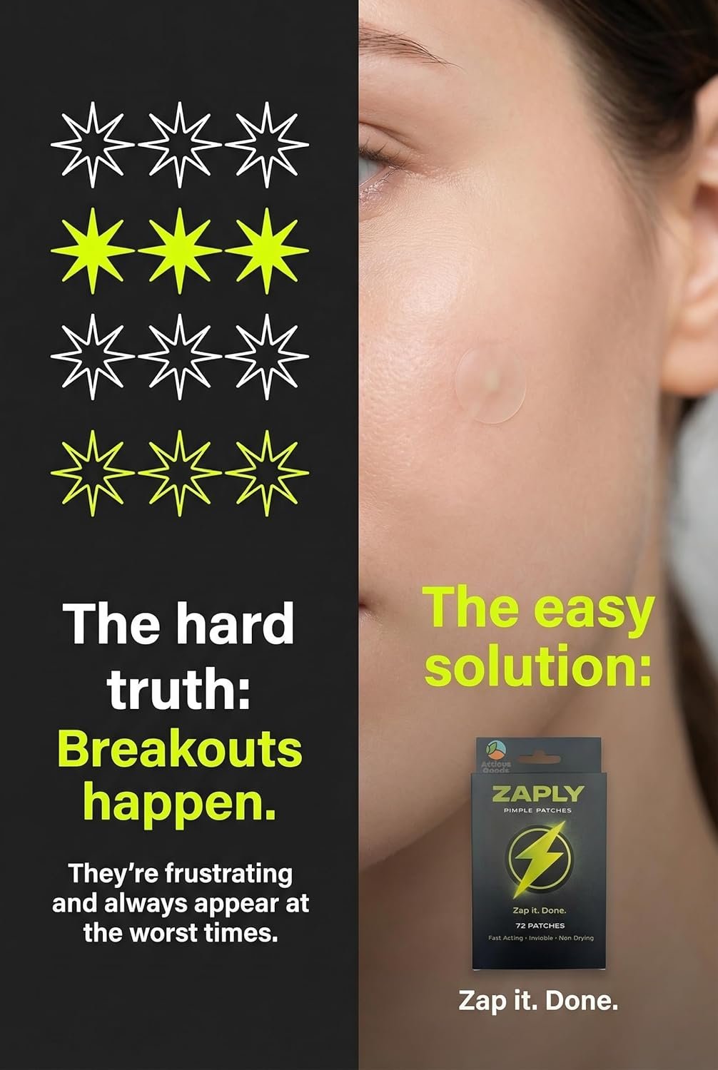 Zaply Pimple Patch Set, Discreet Pimple Patches for Face, Gentle Skin Treatment for Teens and Adults, Invisible Spot Cover, Absorbs Zits & Blemish, this mighty patch does the job (72ct)