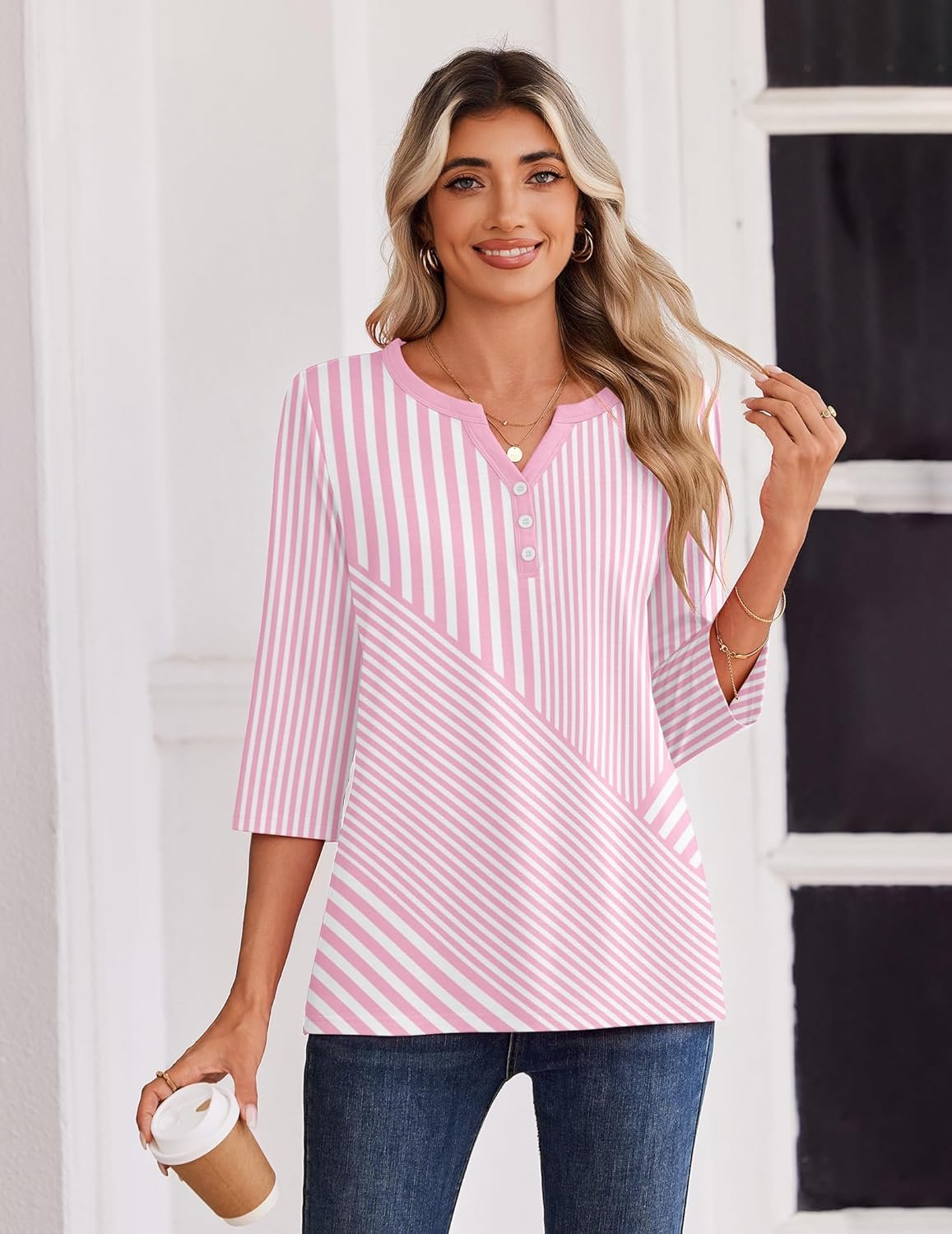 Zeagoo 3/4 Length Sleeve Womens Tops Casual Dressy Summer Blouses Buisness Work Spring Tee Shirts