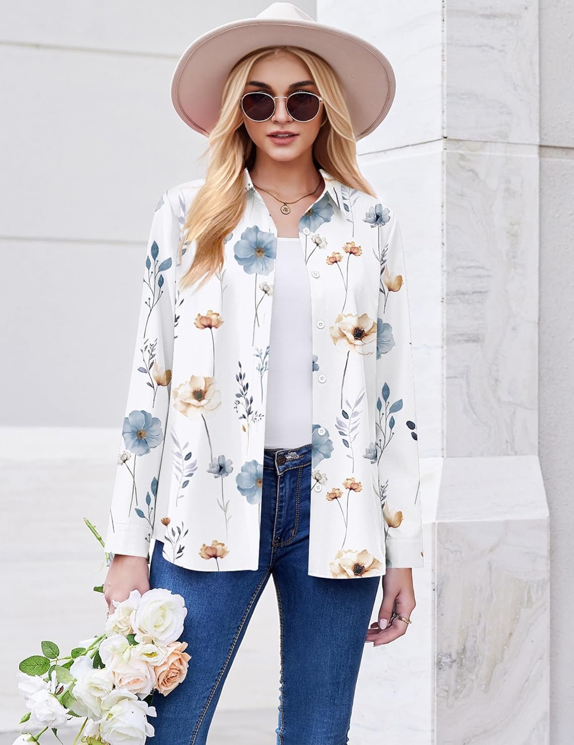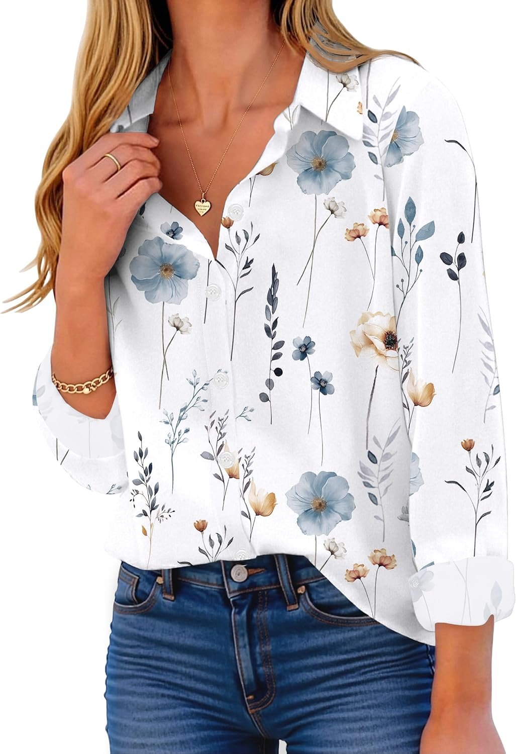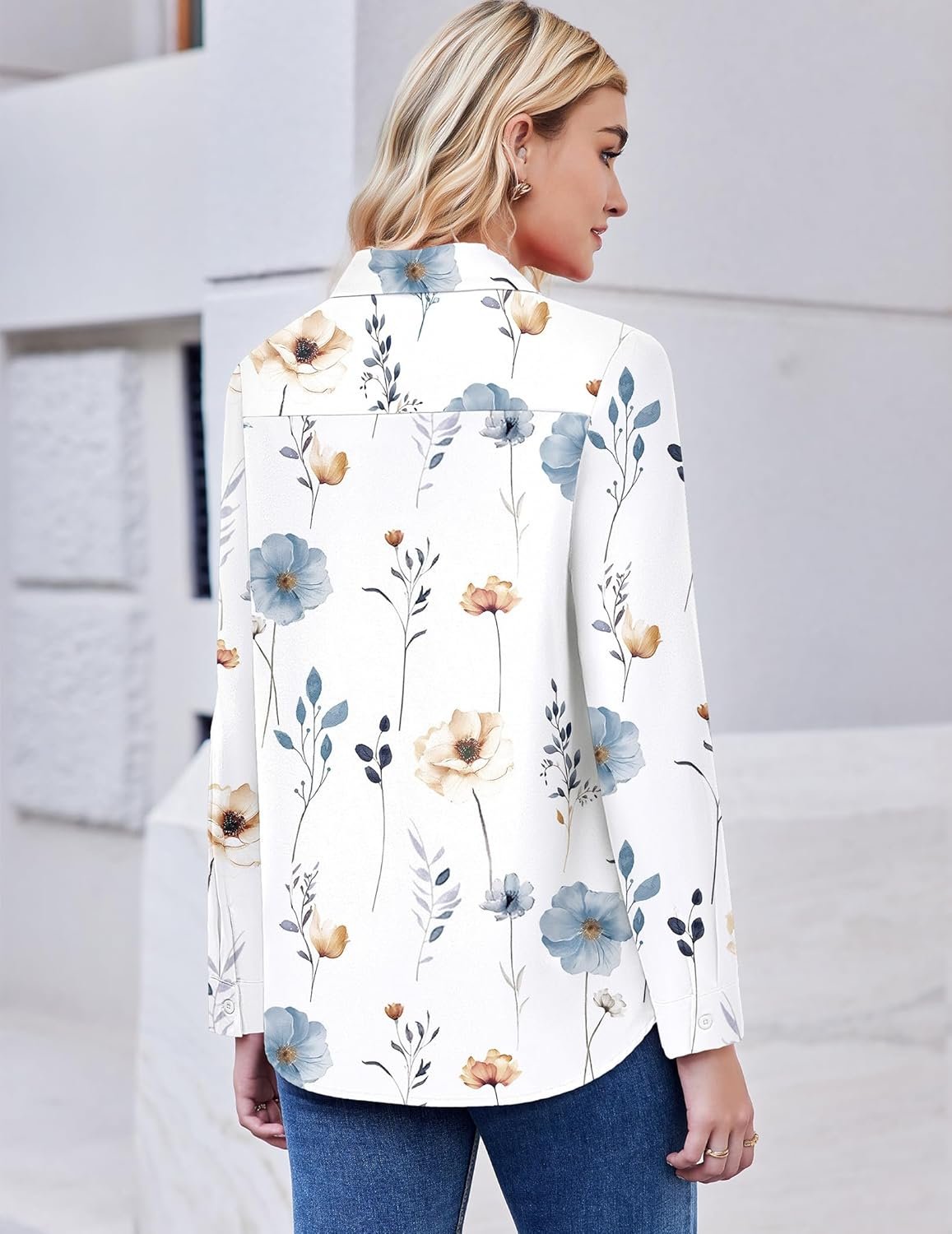 ZEAGOO Button Down Shirt for Women Long Sleeve Blouses Floral Printed Tops Business Casual Work Outfits S-XXL