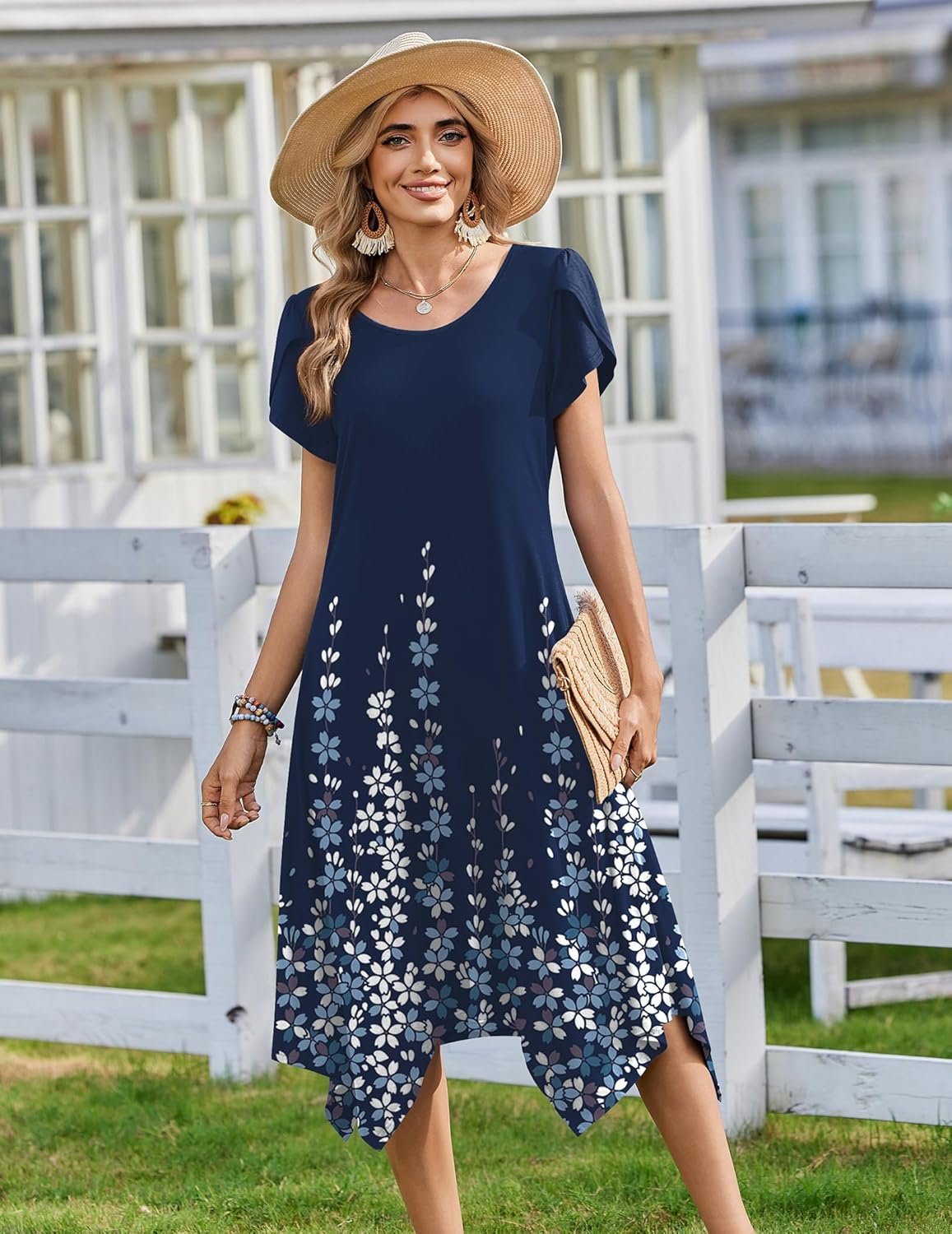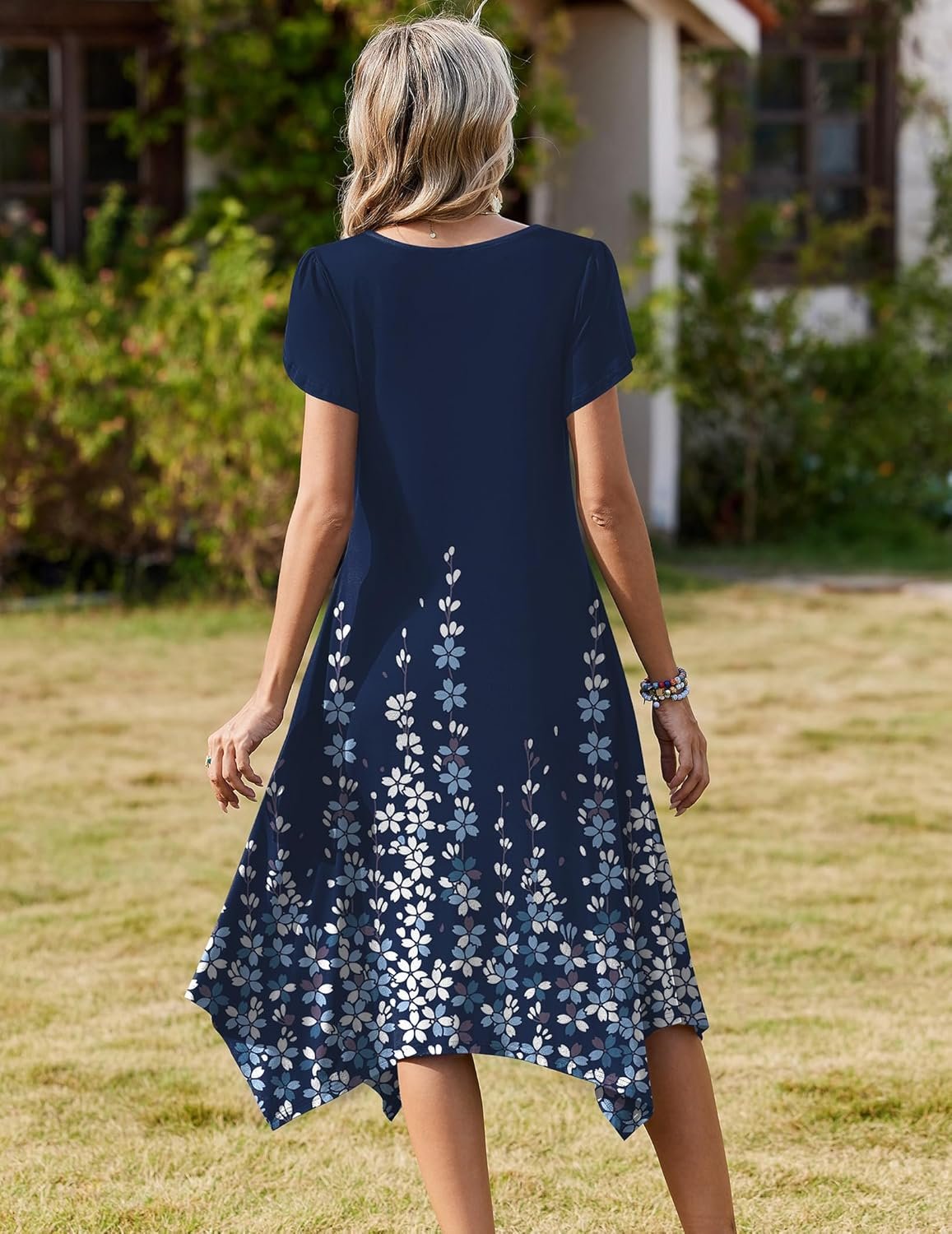 Zeagoo Womens Casual Dress for Summer Short Sleeve Loose Flowy Beach Dress with Pockets Hankerchief Flare Midi Sundress 2026