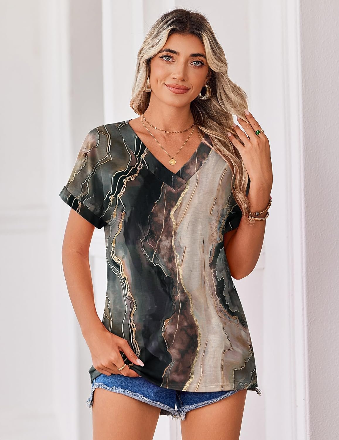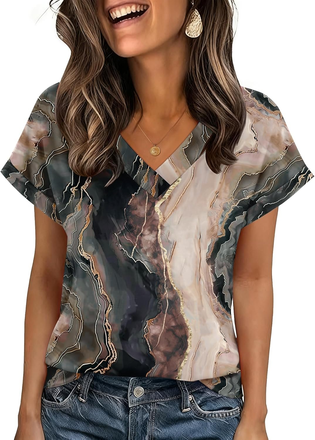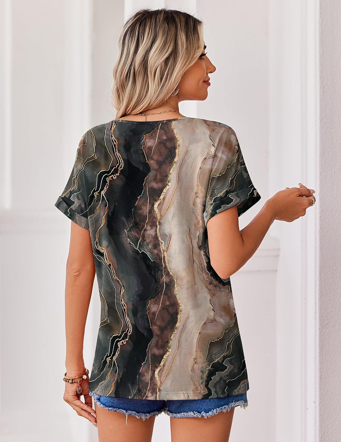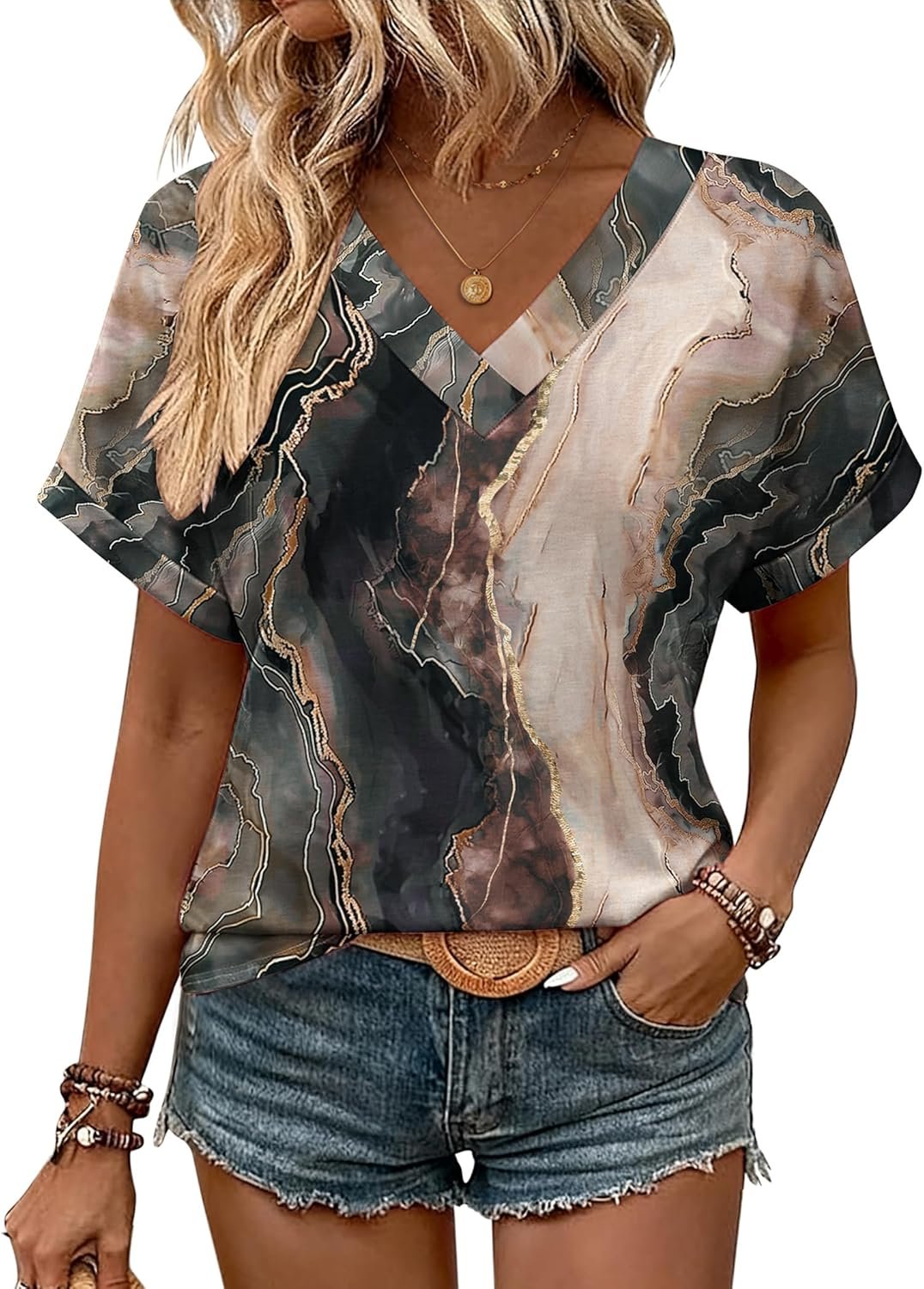 Boho Tops for Women Short Sleeve Shirts V Neck T Shirts Spring Summer Outfits