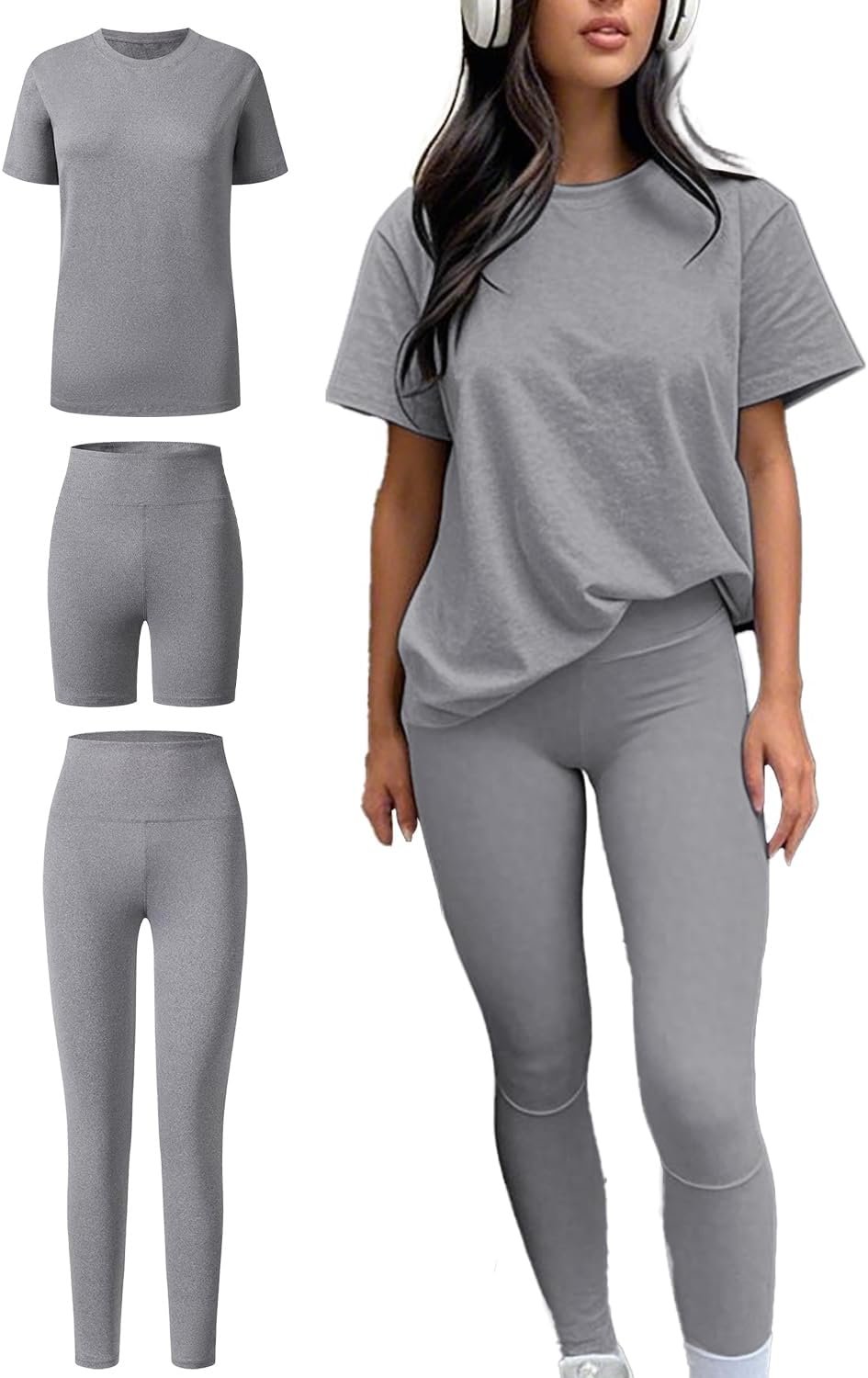 Be the first to review “ZFLM casual sportswear 3-piece set high waist tight pants yoga pants short sleeved round neck yoga set”